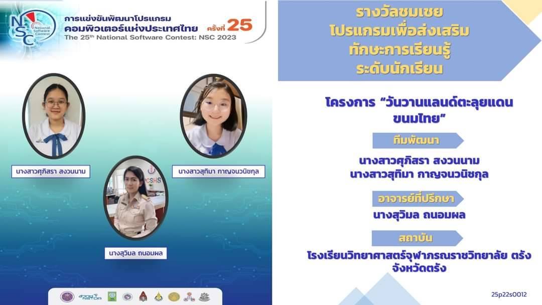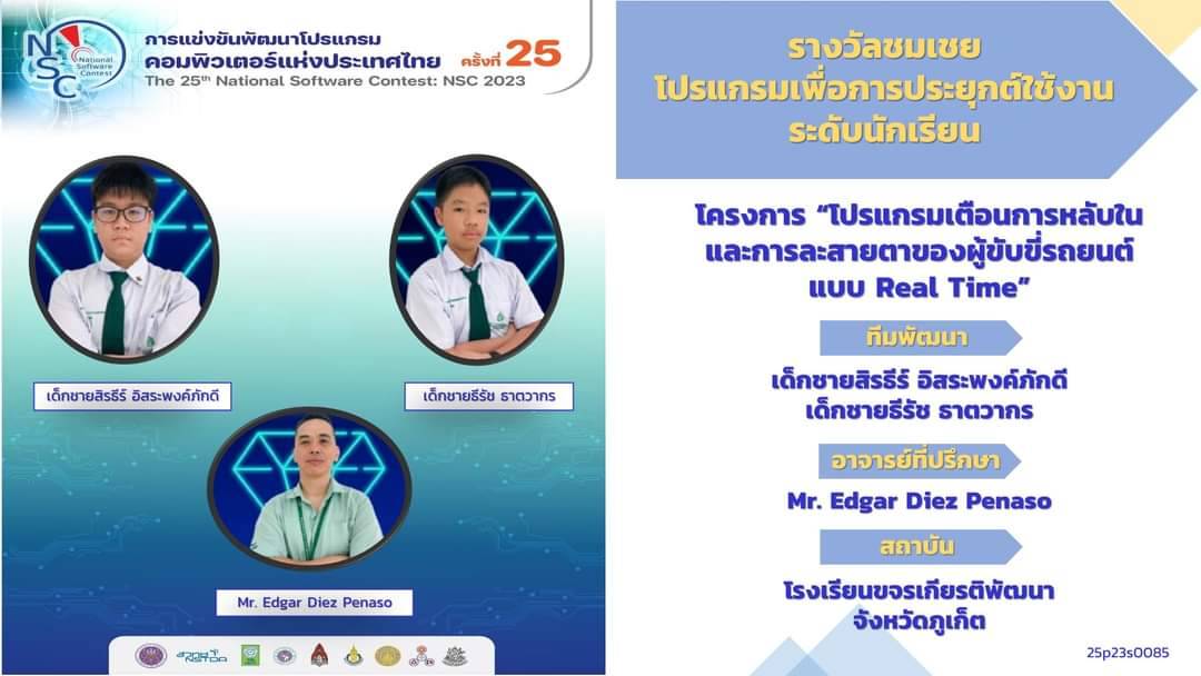 นักศึกษาสาขาวิชาวิศวกรรมคอมพิวเตอร์และวิศวกรรมปัญญาประดิษฐ์คว้ารางวัลที่ 3 และรางวัลชมเชยในการแข่งขันพัฒนาโปรแกรมคอมพิวเตอร์แห่งประเทศไทย ครั้งที่ 25 หรือ  National Software Contest 2023 (NSC 2023)  รอบชิงชนะเลิศ ซึ่งจัดโดย ฝ่ายส่งเสริมและพัฒนาเด็กและเยาวชนที่มีศักยภาพสูง ส านักงานพัฒนาวิทยาศาสตร์และเทคโนโลยีแห่งชาติ (สวทช.) กระทรวงการอุดมศึกษา วิทยาศาสตร์ วิจัยและนวัตกรรม เมื่อวันที่ 27 เมษายน พ.ศ. 2566 เวลา 8.30 -17.00 น.