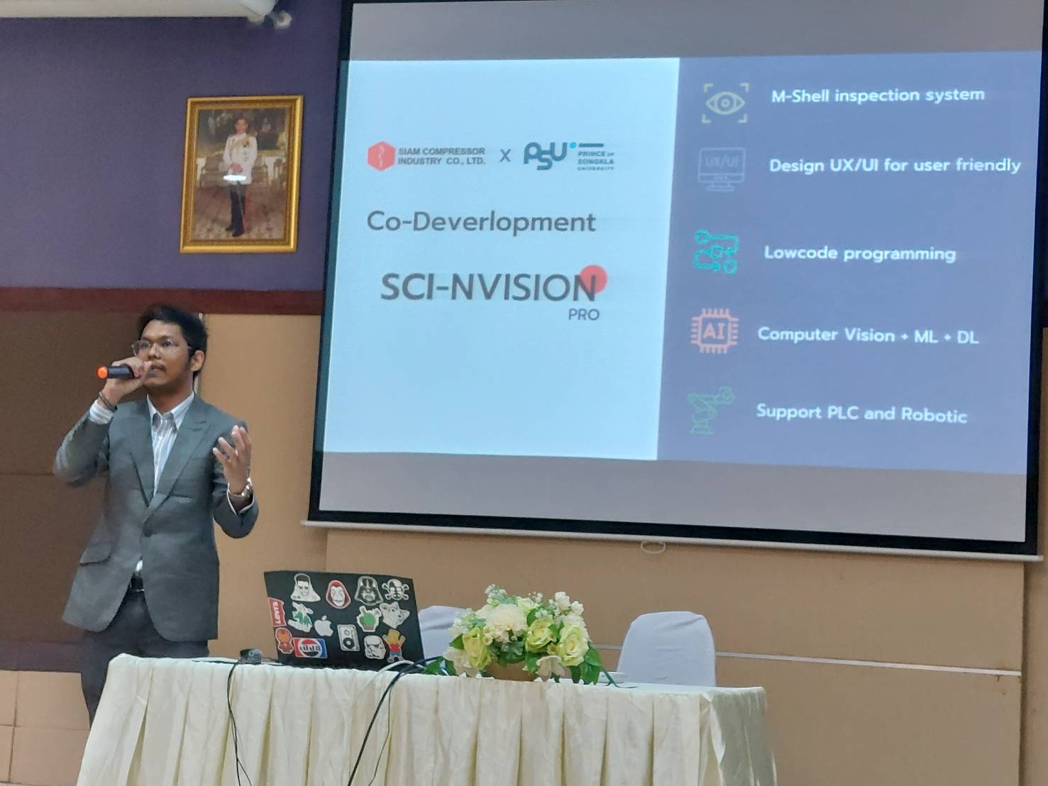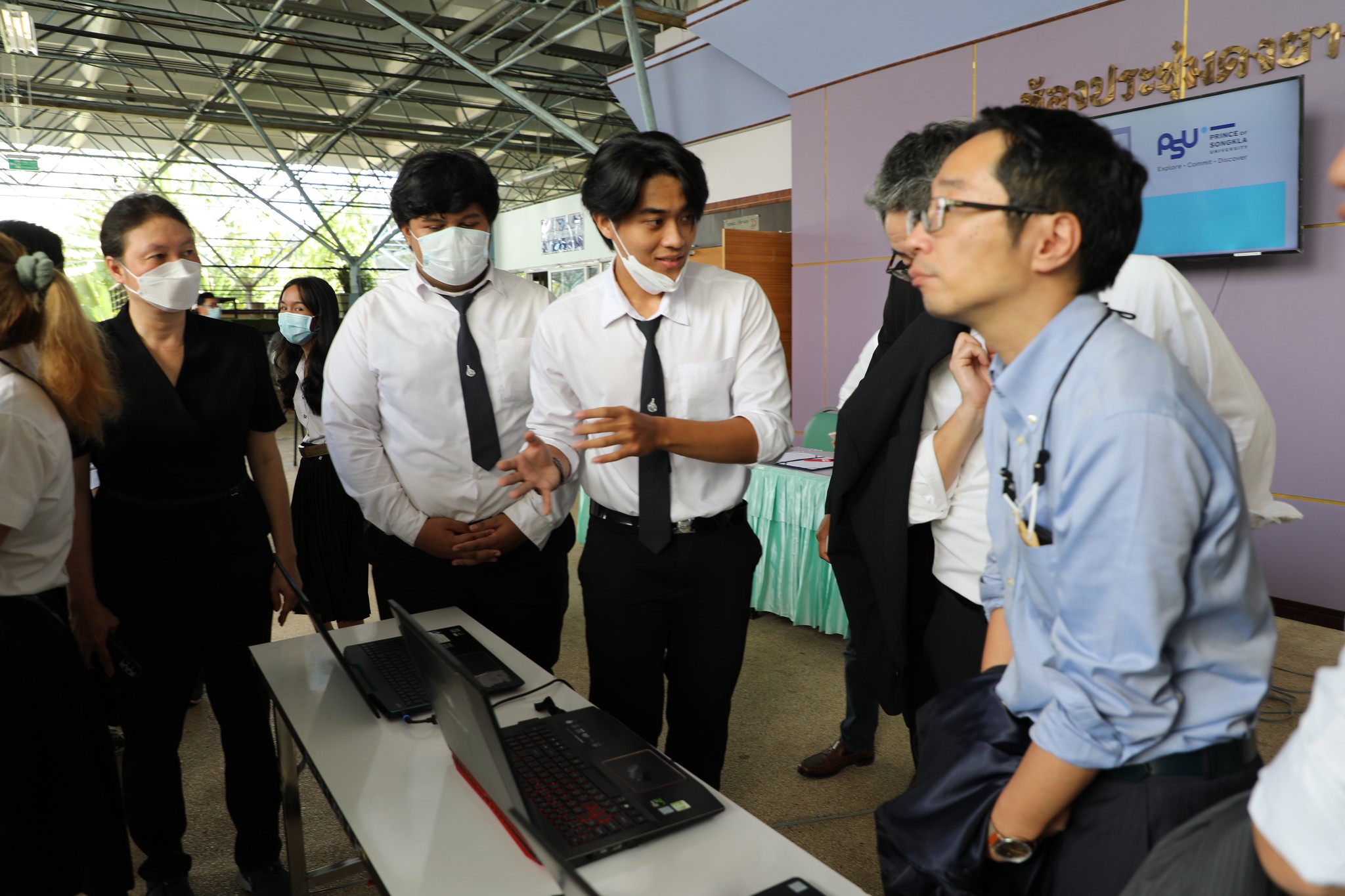 ในการนี้ผู้บริหาร คณะวิศวกรรมศาสตร์ มหาวิทยาลัยสงขลานครินทร์ ได้นำผู้บริหาร บริษัท สยามคอมเพรสเซอร์อุตสาหกรรม จำกัด (SCI) และบริษัท มิตซูบิบิชิ อิเล็คทริค แฟคทอรี่ ออโตเมชั่น (ประเทศไทย) จำกัด เยี่ยมชมห้องปฏิบัติการสาขาวิชาต่าง ๆ รวมถึงห้องปฏิบัติการสาขาวิชาวิศวกรรมคอมพิวเตอร์ โดยมีอาจารย์ นักวิจัย และนักศึกษา คอยให้แนะนำข้อมูล