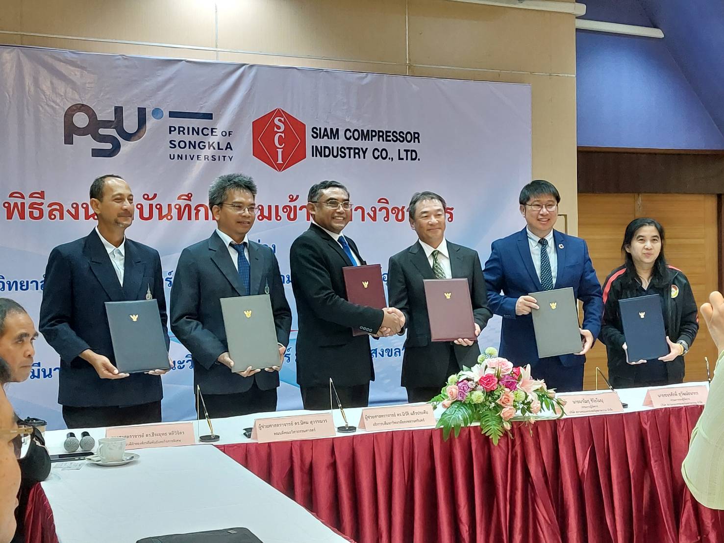 ในวันศุกร์ที่ 10 มีนาคม 2566 เวลา 09.00 – 12.00 น. คณะวิศวกรรมศาสตร์ มหาวิทยาลัยสงขลานครินทร์ ร่วมลงนามความร่วมมือกับบริษัท สยามคอมเพรสเซอร์อุตสาหกรรม จำกัด (SCI) โดยมี ผศ.ดร.นิคม สุวรรณวร คณบดีคณะวิศวกรรมศาสตร์ พร้อมด้วย นายมาโมรุ ชิโยโนบุ กรรมการผู้จัดการ SCI และผศ.ดร.นิวัติ แก้วประดับ อธิการบดีมหาวิทยาลัยสงขลานครินทร์ เป็นประธานในพิธีพร้อมร่วมลงนามความร่วมมือ ณ ห้องประชุมดงยาง 1 คณะวิศวกรรมศาสตร์ มหาวิทยาลัยสงขลานครินทร์