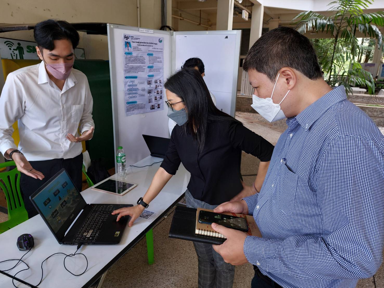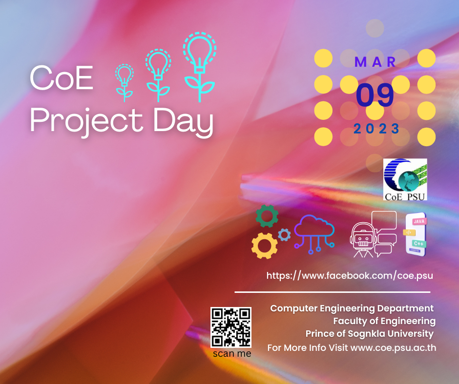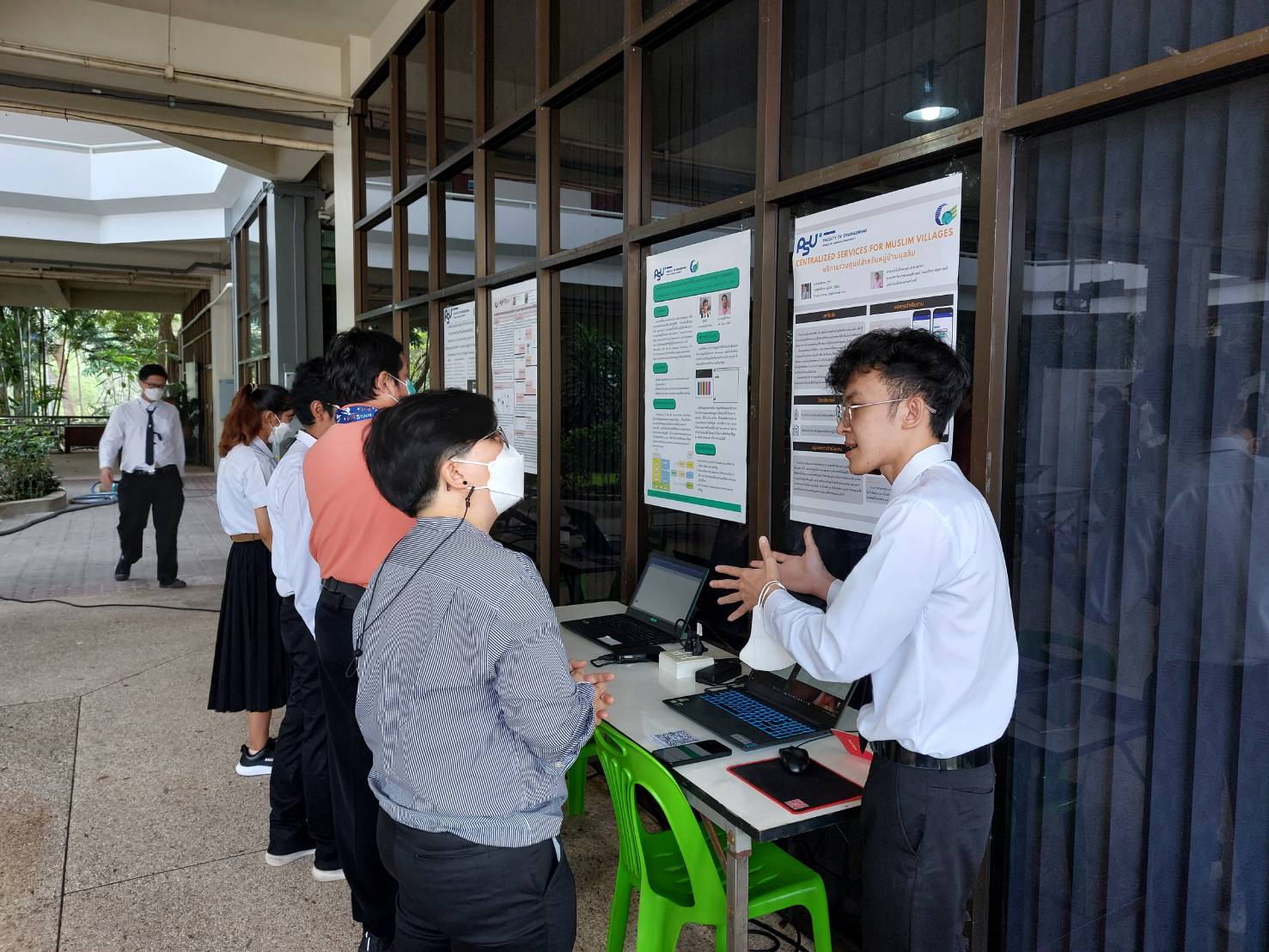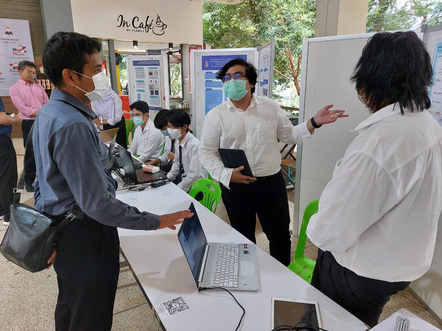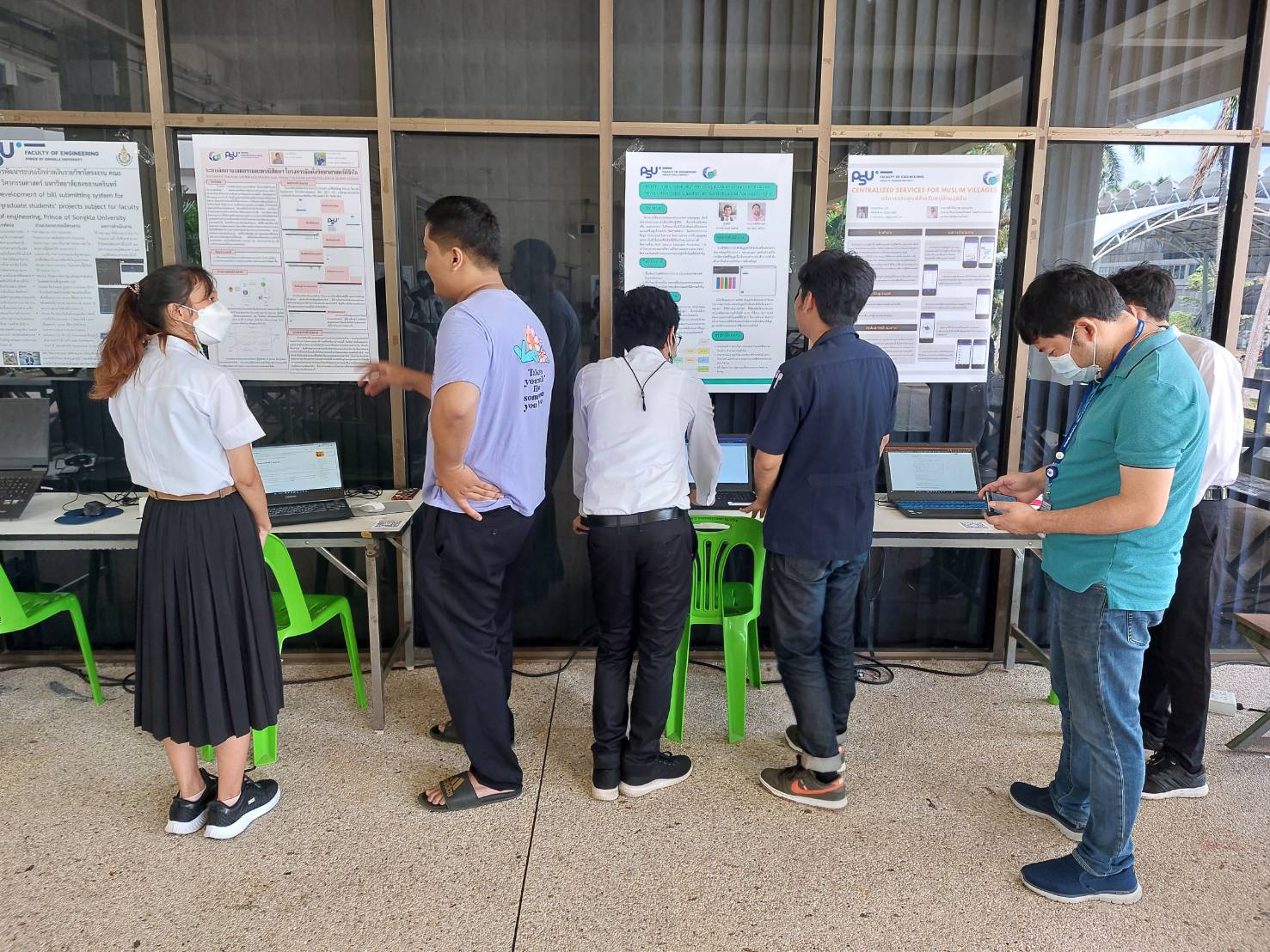 การสอบนำเสนอโครงงานทางวิศวกรรมคอมพิวเตอร์ ปีการศึกษา 2565  ในรูปแบบนิทรรศการ ผ่านการนำเสนอชิ้นงาน และ/หรือ โปสเตอร์วิชาการ ของนักศึกษาผู้ลงทะเบียนเรียนรายวิชา 240-402 Computer Engineering Project II  ภาคการศึกษาที่ 2/2565 โดยมีอาจารย์ที่ปรึกษาและกรรมการสอบรับฟังการนำเสนอเพื่อวัดผลในรายวิชา