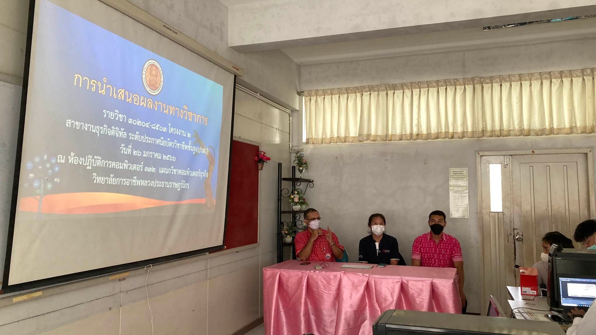 คุณพิพัฒน์ พิพิธพัฒนพงศ์ นักวิชาการคอมพิวเตอร์ สาขาวิชาวิศวกรรมคอมพิวเตอร์ คณะวิศวกรรมศาสตร์ ร่วมเป็นวิทยากรและคณะกรรมการประเมินผลงานทางวิชาการ ในรายวิชา 30204-8503 โครงงาน 2 ระดับชั้นปวส. 2 สาขางานธุรกิจดิจิทัล ให้กับแผนกวิชาเทคโนโลยีธุรกิจดิจิทัล วิทยาลัยการอาชีพหลวงประธานราฎร์นิกร ในวันที่ 26 มกราคม พ.ศ. 2566 เวลา 13.00-16.00 น.