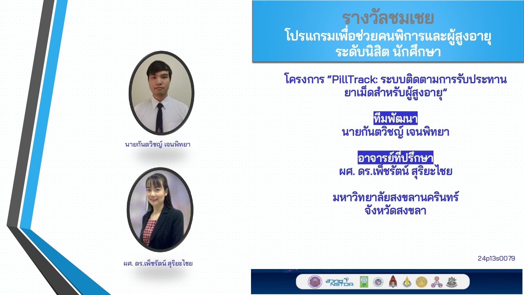 PillTrack เป็นระบบติดตามการรับประทานยาเม็ดสำหรับผู้สูงอายุ เป็นระบบที่พัฒนาเพื่อช่วยแก้ปัญหาการเข้าสู่สังคมผู้สูงอายุของประเทศไทย ผู้สูงอายุส่วนหนึ่งต้องรับประทานยาตามที่แพทย์สั่งอย่างสม่ำเสมอ อย่างไรก็ดีผู้สูงอายุบางท่านอาจลืมรับประทานยา หรือรับประทานยาผิดชนิดหรือผิดเวลา เพื่อแก้ปัญหาดังกล่าว ระบบ PillTrack ประกอบด้วยกล่องยาที่มีระบบตรวจจับภาพเม็ดยาด้วยศาสตร์ปัญญาประดิษฐ์ จากนั้นจะแสดงจำนวนเม็ดยาคงเหลือภายในกล่องยาและข้อมูลการรับประทานยาของผู้ป่วยในแต่ละวันบนหน้าเว็บแอปพลิเคชัน ระบบนี้จึงช่วยให้แพทย์หรือผู้ดูแลผู้ป่วยสามารถติดตามพฤติกรรมการรับประทานยาของผู้สูงอายุได้อย่างมีประสิทธิภาพ และช่วยให้ผู้สูงอายุรับประทานยาครบตามที่แพทย์สั่ง ซึ่งจะเป็นผลดีต่อสุขภาพของผู้สูงอายุด้วย